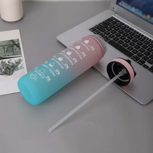 2 Bouteilles d'eau 1L de Sport Étanche, Graduée, Gourde avec Paille et Index des Heures, Idéal pour Les Loisirs, Le Fitness, le Vélo